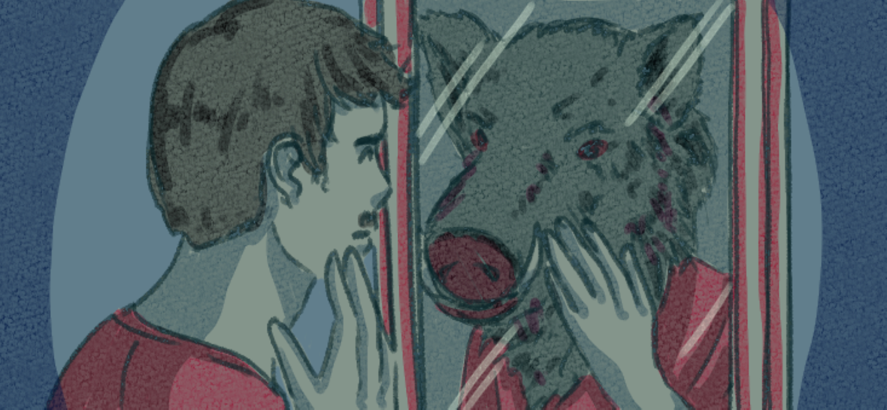 Setelah membersihkan diri, aku kembali ke kamar. Aku mendekati lemari pakaian untuk mengambil baju dan celana. Aku yang berbalut handuk hendak membuka daun lemari. Namun, tiba-tiba saja aku tersentak dan berteriak kaget. Pasalnya, aku melihat pantulan cermin lemari baju bukanlah diriku. Aku seolah-olah berubah menjadi manusia babi, di mana seluruh tubuhku berbulu hitam kasar dengan perut buncit. Wajahku pun berbeda, kini hidungku menjadi lemper, dan bermoncong panjang.