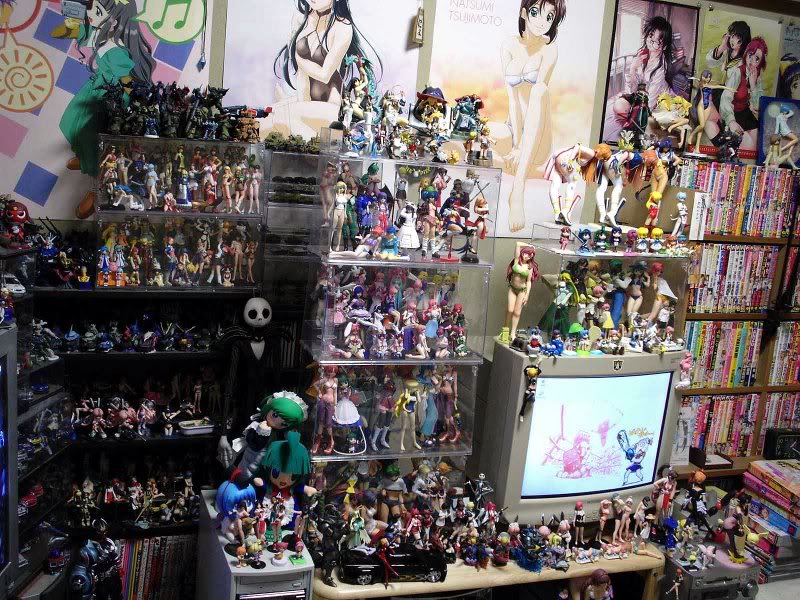 Seorang Otaku pasti kurang afdol jika kamarnya belum di dekor penuh oleh tempelan poster dan lemari yang penuh dengan Action Figure. Oleh karna itu, mereka Otaku yang punya banyak budget ini rela menghabiskan banyak uang untuk membeli poster, figurine, T-shirt, Bantal bahkan sampai bed cover dan keset kaki juga semuanya serba karakter anime, manga ataupun game. Walaupun barang – barangnya banyak, kamar mereka tetap tertata rapi dan bersih.